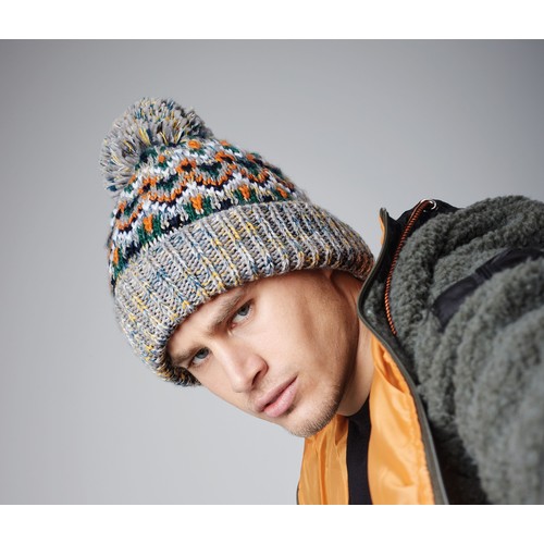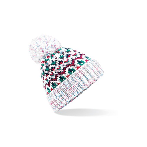 RDT3368228Bonnet avec pompon Blizzard Étiquette détachable. Avec revers pour une décoration optimale. Doublure luxueuse en fausse peau de mouton. Pompon ton sur ton. Motif géométique contemporain.