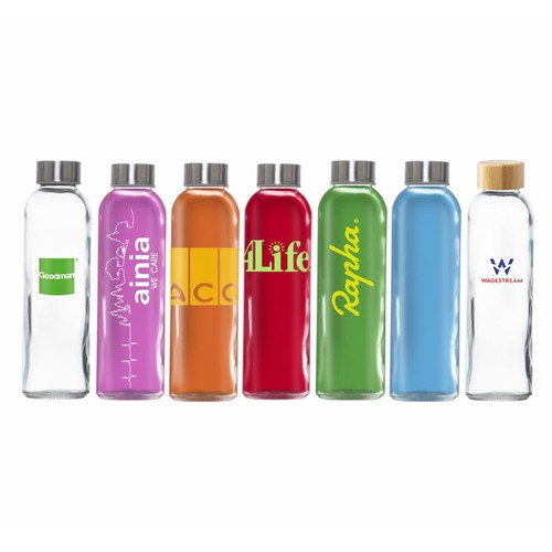 RDT2518496MAE. Bouteille en verre transparente ou colorée. 50cl (6,3x22cm - 6,9x19,5cm ou 75cl (6,5x28cm). Diverses personnalisations.