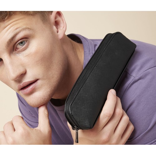 RDT3366802Mini trousse Étiquette détachable. Simili cuir Saffiano. Compartiment principal zippé. Doublure douce. Multi-usage.