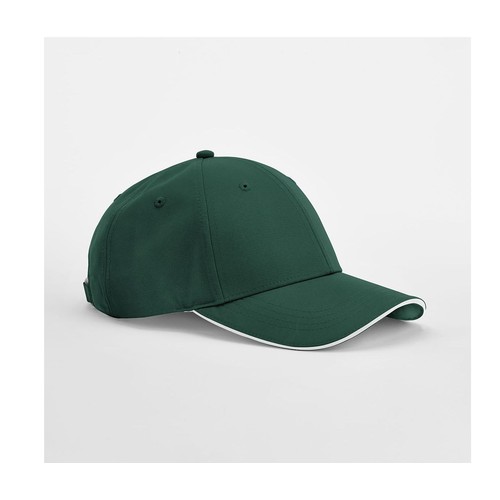 RDT3368291Bande de propreté en coton. 6 panneaux. Visière courbée avec liseré contrasté. Œillets cousus. Fermeture par boucle. Étiquette détachable. Tour de tête : 58cm. Visière en polyéthylène recyclé, un matériau résistant, léger et flexible. Le polyester recyclé utilisé correspond à 7/8 bouteille(s) de 500ml.