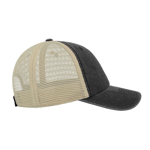 RDT33546896 panneaux. Panneaux avant non structuré. Fermeture par Velcro®. Visière préformée. 6 œillets cousus. Bandeau 100% coton Chino. 8 coutures sur la visière. Effet délavé. Tour de tête : 58cm. Structure de la visière en plastique.