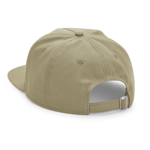 RDT33569435 panneaux. Tour de tête non structuré. Visière plate. Sangle de serrage du même tissu avec boucle réglable triglide. Étiquette détachable TearAway. Tour de tête : 58cm. Visière en polyéthylène recyclé, un matériau résistant, léger et flexible.