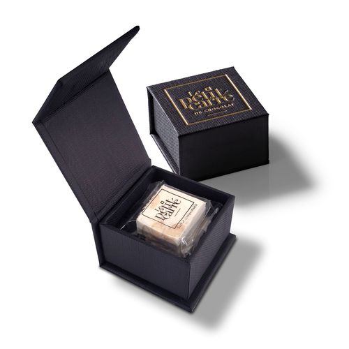 RDT3443929Coffret en carton recyclé recouvert d'un papier texturé, couvercle à rabat aimanté doré à chaud