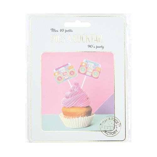 RDT3212214PICS A COCKTAIL 90'S PARTY EN FORME DE RADIO CASSETTE VINTAGE X 10PCS AVEC JOLIS DETAILS IRISES DIMENSION MOTIF: 3,5CM X 4,7CM