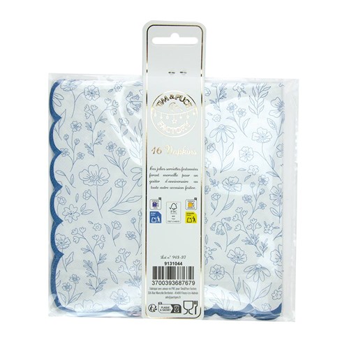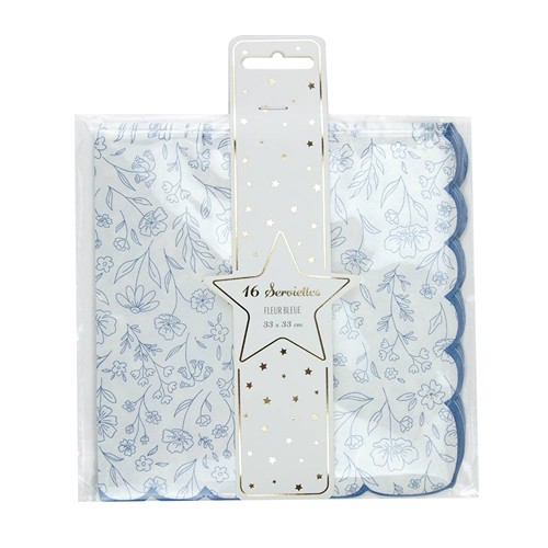 SERVIETTES FESTONNEES 33X33CM FLEUR BLEUE X 16