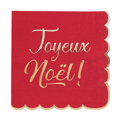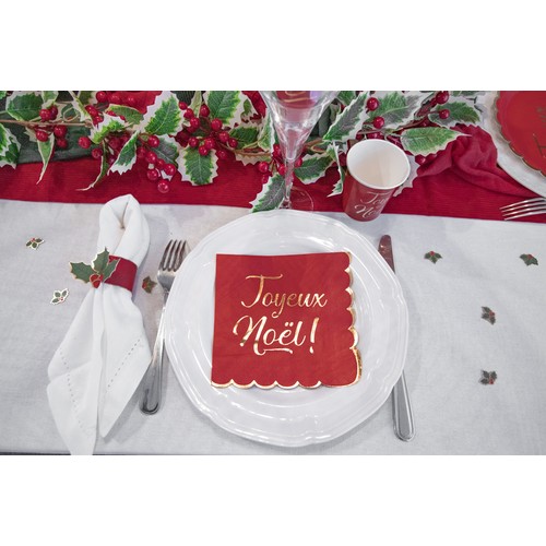 SERVIETTES FESTONNEES 33X33CM ROUGES ET OR JOYEUX NOEL X 16