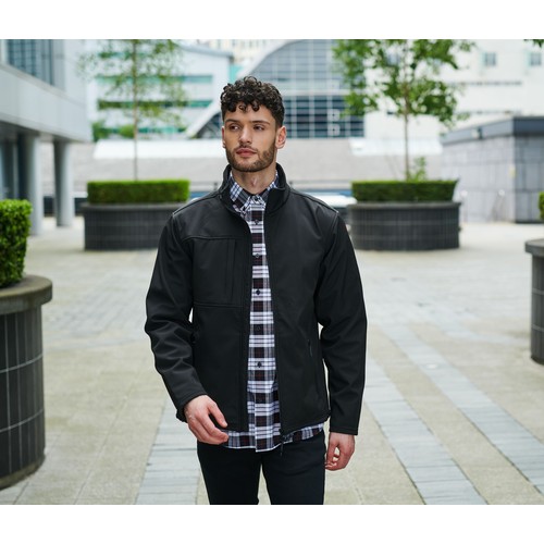 RDT3349924Softshell 3 couches. Imperméable à 5000mm et respirante à 10000gr. Coupe-vent. Rabat tempête intérieur. 2 poches frontales zippées. Poche poitrine zippée. Taille élastiquée et réglable par cordon.