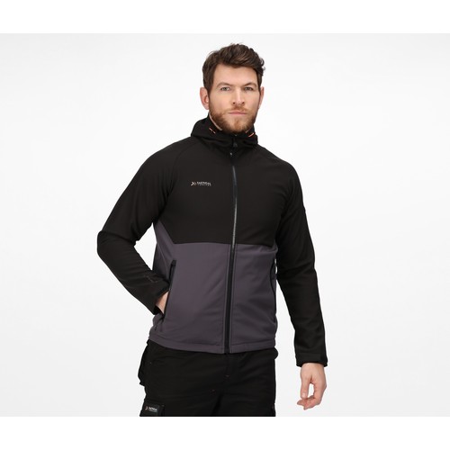 RDT3368351Veste Softshell à capuche Softshell 2 couches. Finition DWR. Coupe-vent. Capuche ajustable. Poignets et taille ajustables. Bandes stretchs aux poignets et à la taille.