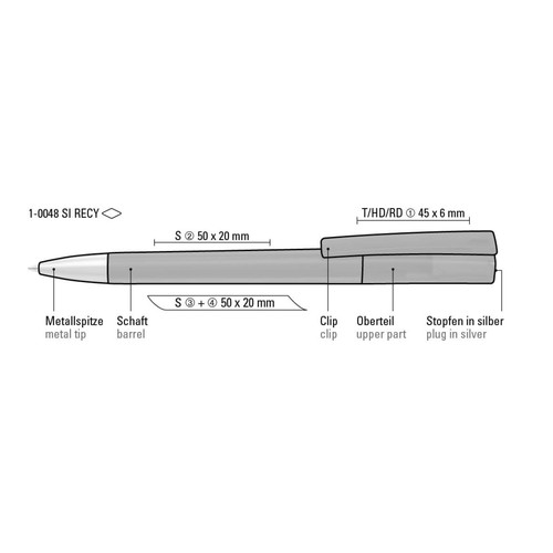 RDT2657427Stylo bille à rotation unicolore avec corps opaque mat fait de plastique recyclé à 100% Les modèles sont marqués par des symboles de recyclage