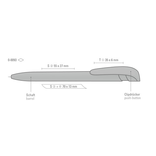 RDT2657405Stylo bille rétractable avec corps opaque brillant en noir ou blanc et large poussoir à clip en arc.